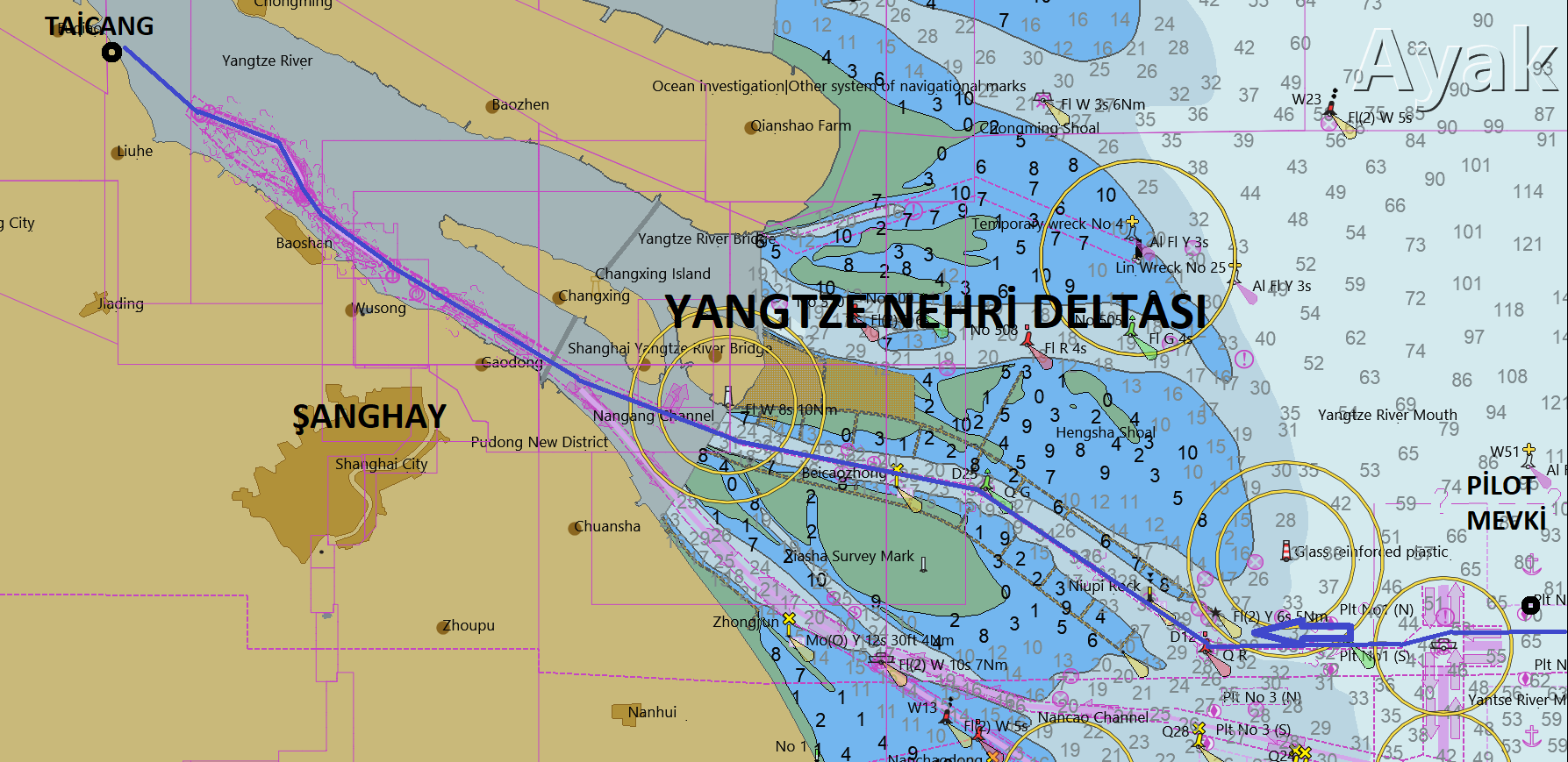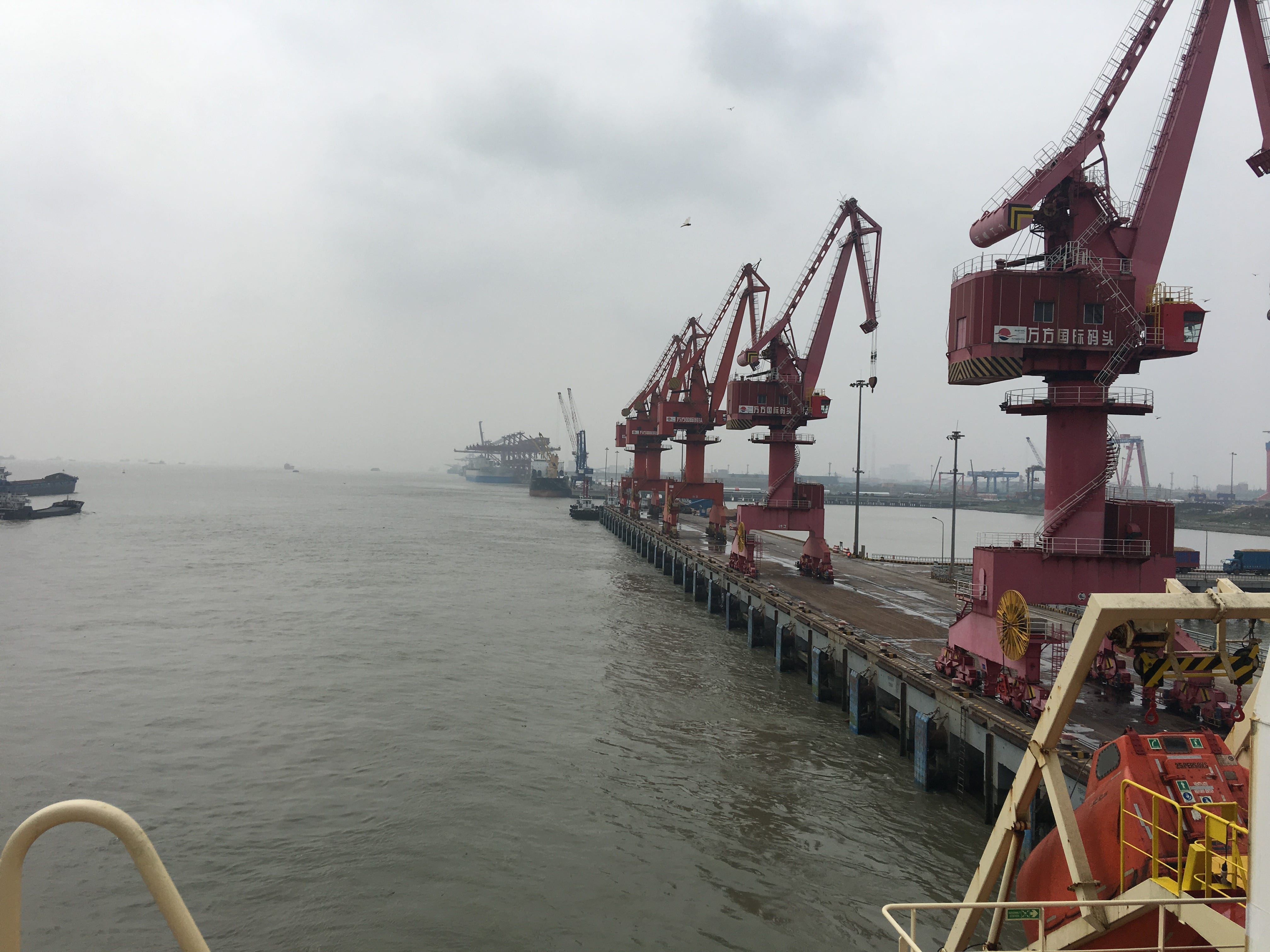 Asya’nın en uzun, Dünya’nın üçüncü en uzun nehri olan Yangtze nehrine girmeden önce, yükü boşaltacağımız iskeledeki geminin kalkması için bir süre demirde beklememiz gerekti.