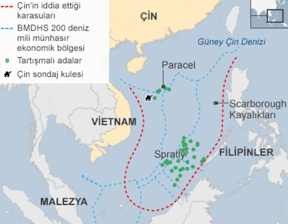 Çin: Kendi kıyılarından oldukça uzak olan bu yerlerin, 15’nci ve 16’ncı yüzyıllara uzanan tarihi nedenlerle kendisine ait olduğunu iddia etmektedir.
