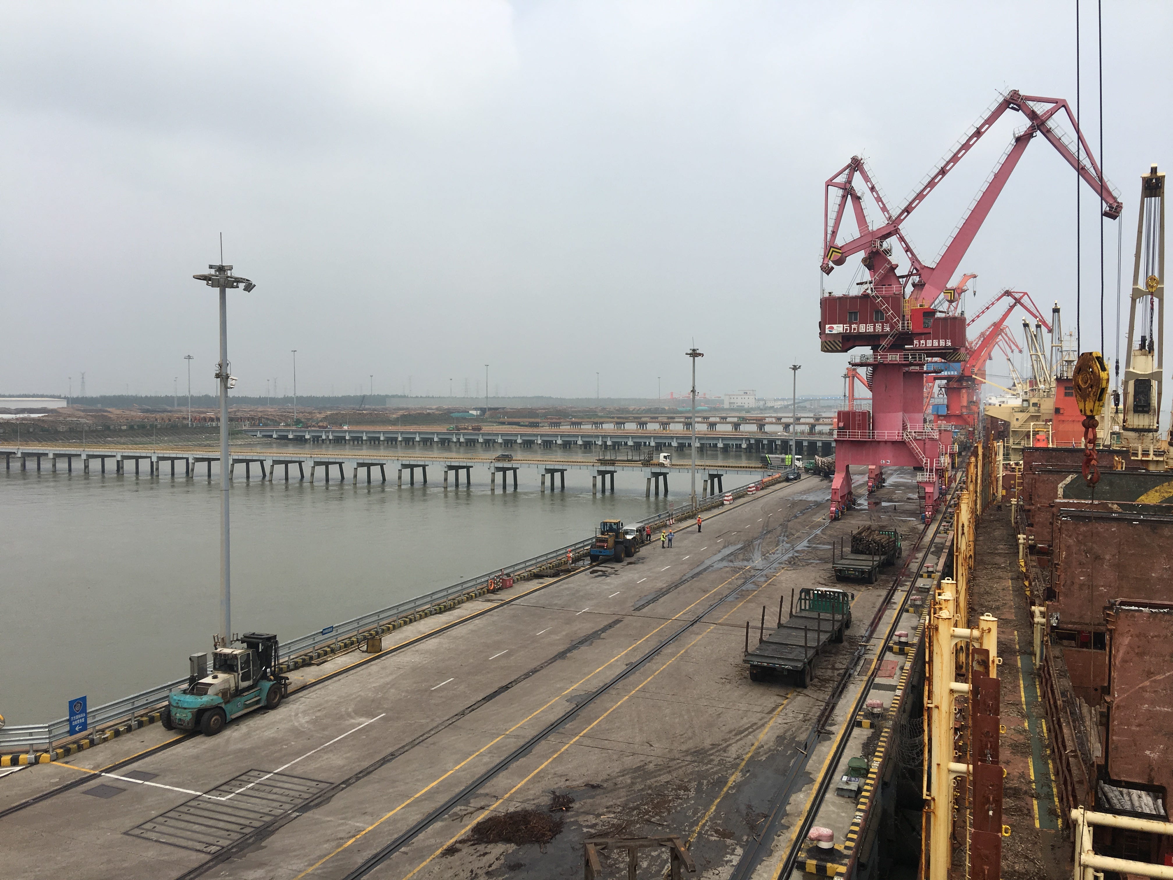Birkaç saat süren nehir seyri sonunda, Şangay şehri civarlarındaki, devasa boyutlardaki Taican kereste depolama sahasının Wanfang Terminaline yanaştım.